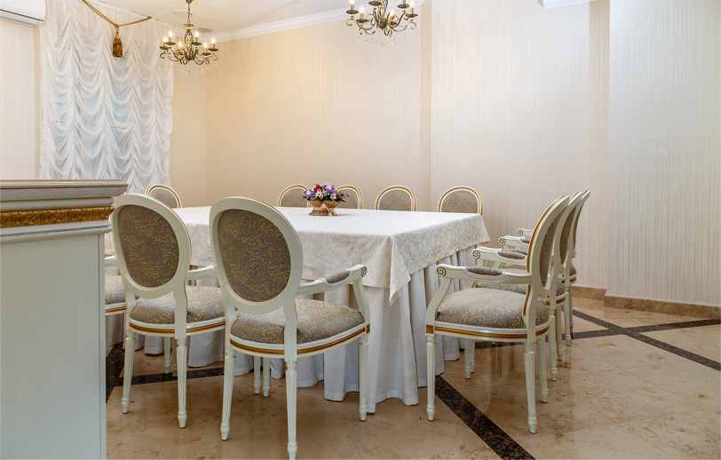 Design moderation and interior elegance creates a feeling of privacy keeping an official atmosphere while helping to solve the most complicated business issues.