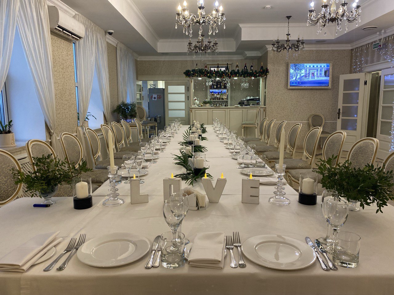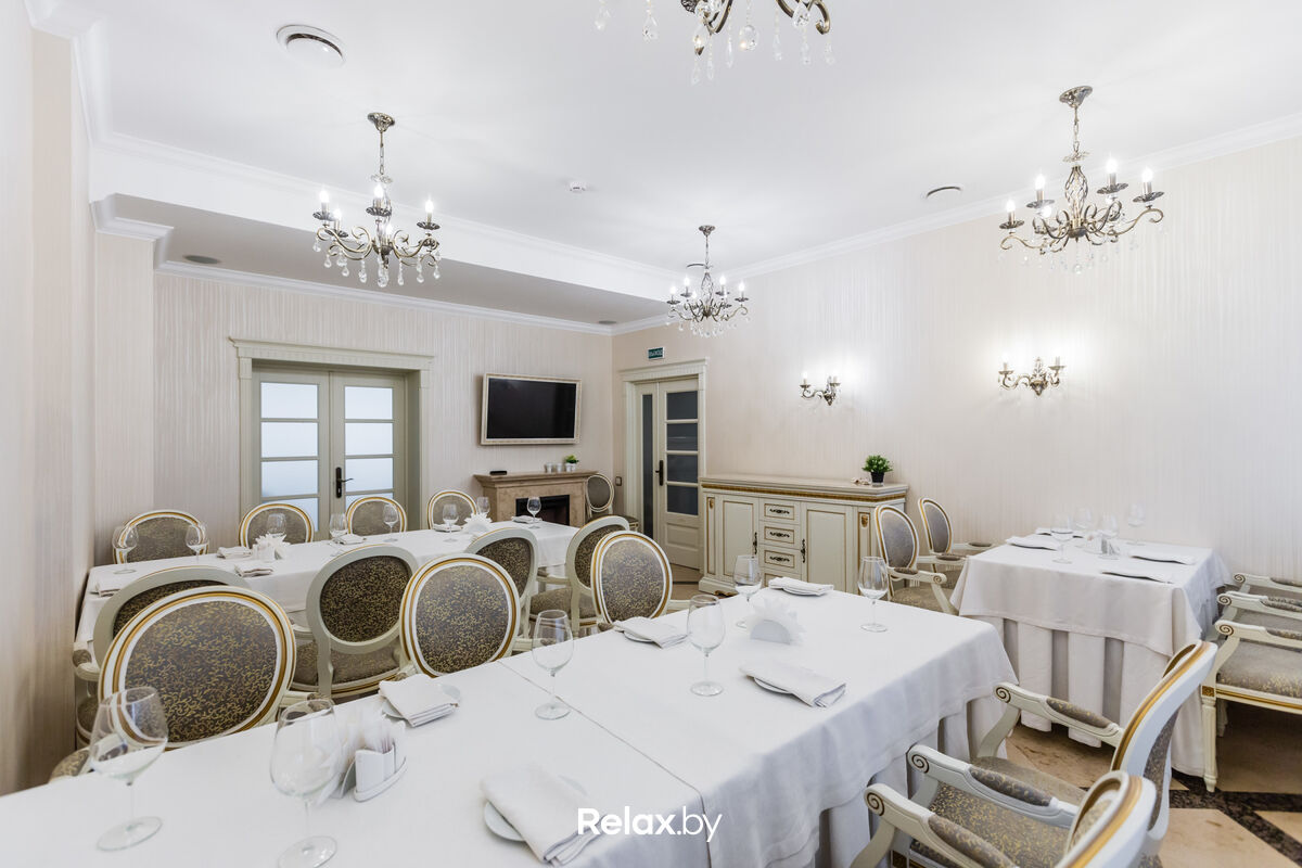 Наш рэстаран ідэальна падыдзе як для правядзення бізнес-сустрэч з партнёрамі, так і для рамантычнага спаткання. Рэстаран з'яўляецца выдатнай пляцоўкай для правядзення карпаратыўных і індывідуальных мерапрыемстваў. Тут можна правесці выдатны банкет або фуршэт, запрасіўшы на ўрачыстасць да 45 персон.